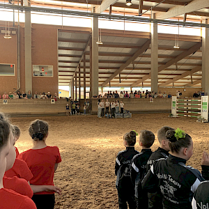 An den Start ging ein Mix‑Team aus Sportlerinnen der beiden RFVA‑Standorte Ailingen und Ahausen/Bermatingen, die sich erstmals gemeinsam auf Turnierparkett präsentierten. Als wäre das nicht schon spannend genug, gab es gleich zwei Premieren: Schimmel „Dusty“, neues Pferd aus dem Stall Ahausen, absolvierte nicht nur seinen ersten Einsatz für den RFVA – sondern überhaupt sein allererstes Voltigierturnier. Nervosität? Und wie!