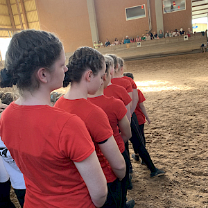 Angelika Welte behielt als Volti‑Managerin den Überblick, Trainerin Cornelia Heimpel kümmerte sich parallel um Warm‑up, Equipment sowie Pferd und Longenführerin. Musik an – und los ging’s!