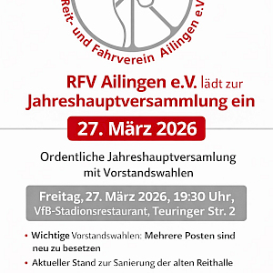 Einladung zur Jahreshauptversammlung 2026 am 27. März: Reit- und Fahrverein Ailingen e.V.