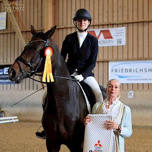 Geld- und Ehrenpreise: R. Bayer Betonsteinwerk Blaubeuren GmbH, Agrobs, Messe FN, Backstube Weber, Elektro Saltik, Reitsport Bauhofer, RC Rupberg, Reisebüro Gindele, Blumen Friedrich, Allianz Ralf Rundel, Krone Schnetzenhausen, Zahnarzt Florian Fries