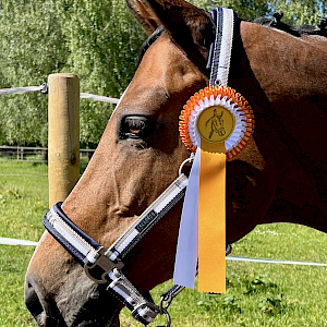 Für Carla und ihre versionierte Lilly Belle war das überhaupt gar kein Problem: souverän absolvierten sie den Parcours und zeigten allen, was sie können! Sie waren auch mit ihrer sensationellen Wertnote von 8,5 nicht zu schlagen und damit ging direkt der Sieg der ersten Prüfung an Ailingen und Carla van Wees mit ihrer süßen Lilly - Wertnote 8,5 und Gold!