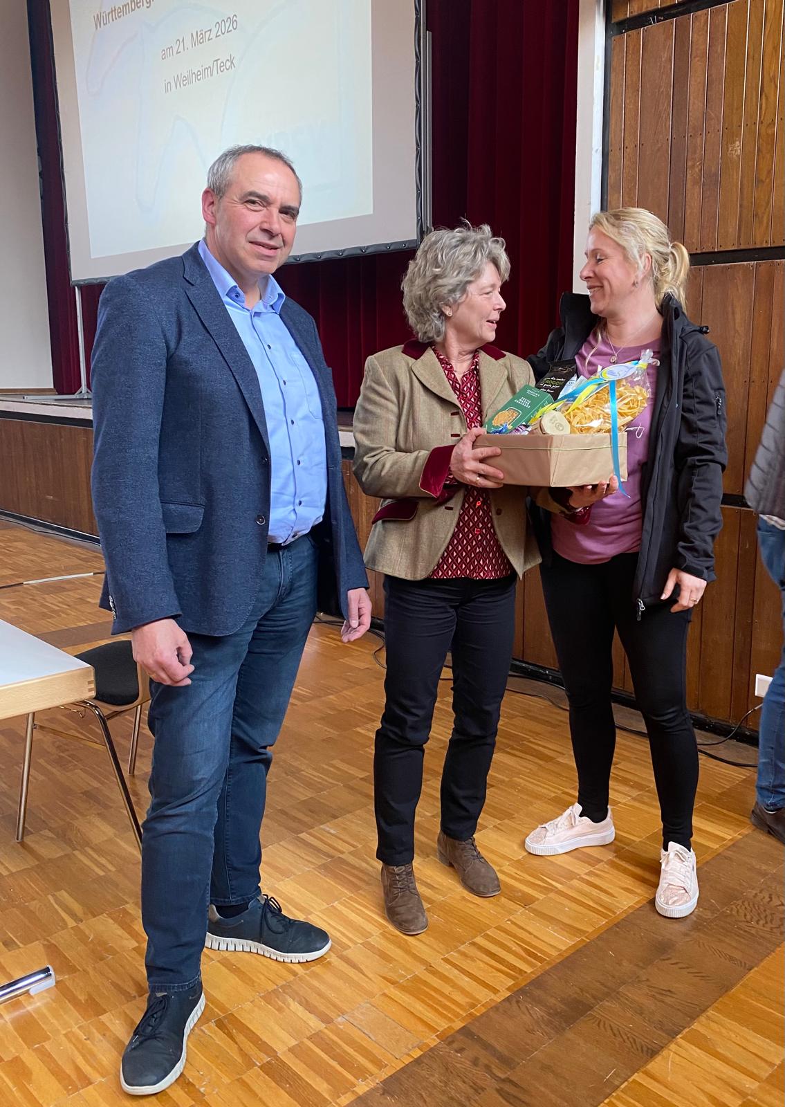 Als Wertschätzung überreichten sie ihr einen kulinarischen Gruß aus der Region, der bei Frau Herbster sichtlich Freude auslöste.