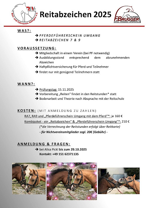 RFVA & Reitschule Brugger: Reitabzeichen & Pferdeführerschein im November – Jetzt anmelden!