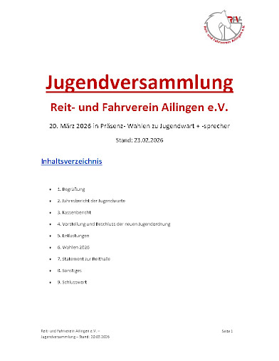 Geplant sind u. a. das Fasnetsreiten, ein Spiel- und Spaßtag, eventuell ein Weihnachtsreiten sowie ein Jugendausflug.
