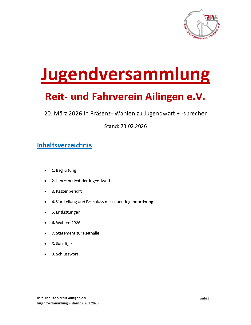 Am 20. März 2026 fand die diesjährige Jugendversammlung des RFVA statt. Zahlreiche Jugendliche und Vereinsmitglieder kamen zusammen, um auf ein aktives Jahr zurückzublicken, wichtige Entscheidungen zu treffen und die Zukunft der Jugendabteilung zu gestalten.