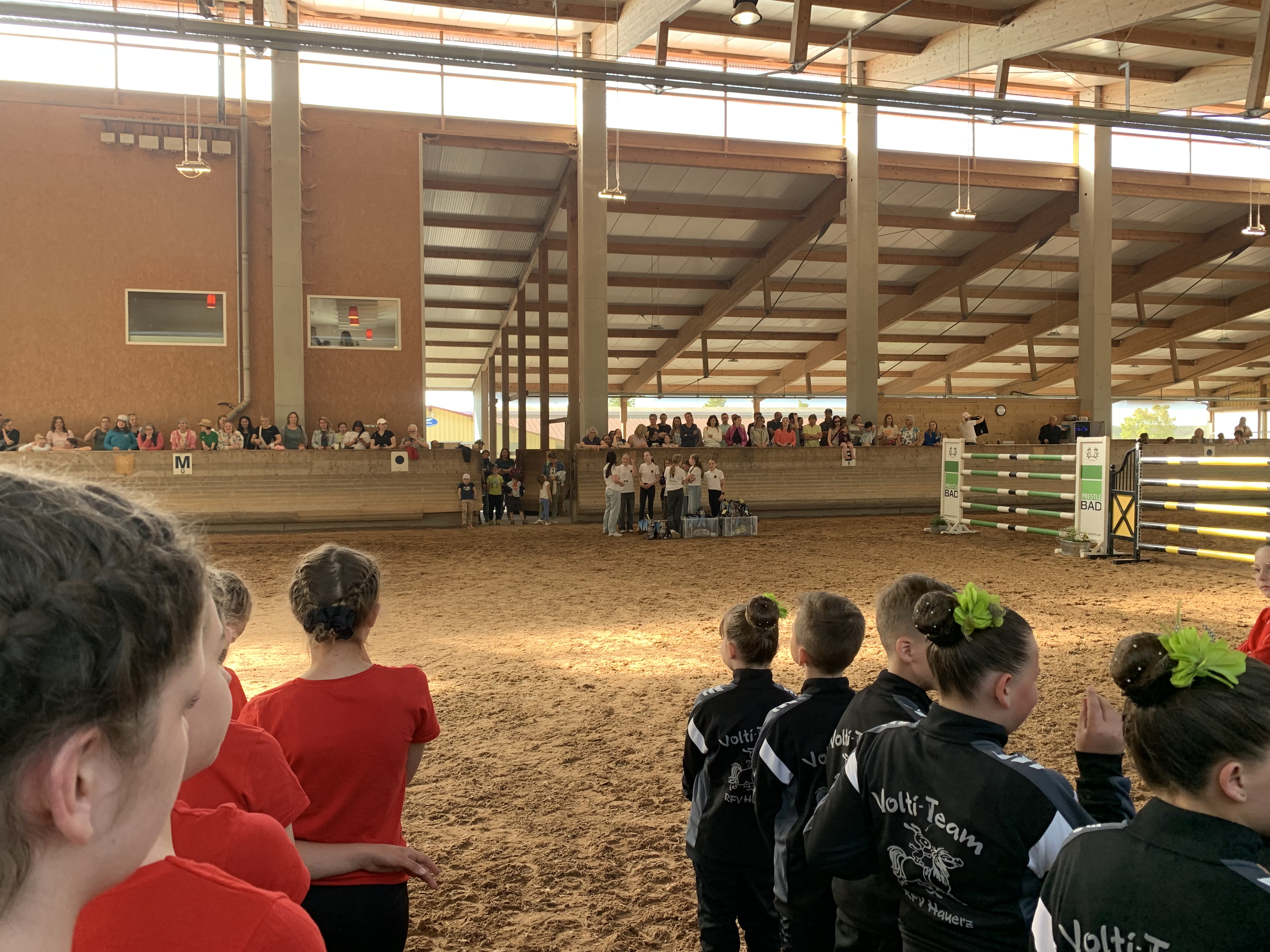 Angelika Welte behielt als Volti‑Managerin den Überblick, Trainerin Cornelia Heimpel kümmerte sich parallel um Warm‑up, Equipment sowie Pferd und Longenführerin. Musik an – und los ging’s!