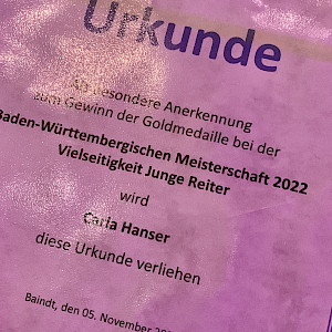 Meisterschaft der Fördergruppen: Sieg für Oberschwaben in Dressur - mit Pauline Fritsch, Ailingen, - und Springen. ...Vielseitigkeit Junioren: Gold für Carla Hanser, Ailingen ...