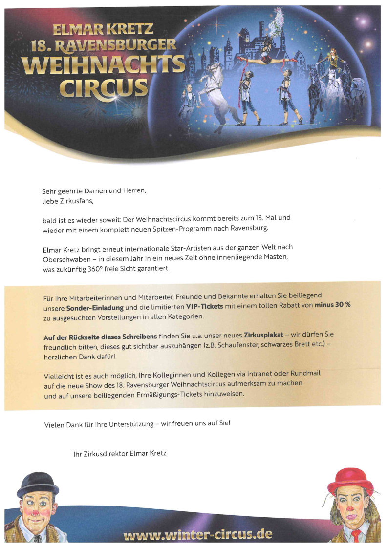 Hereinspaziert zum 18. Ravensburger Weihnachtscircus!