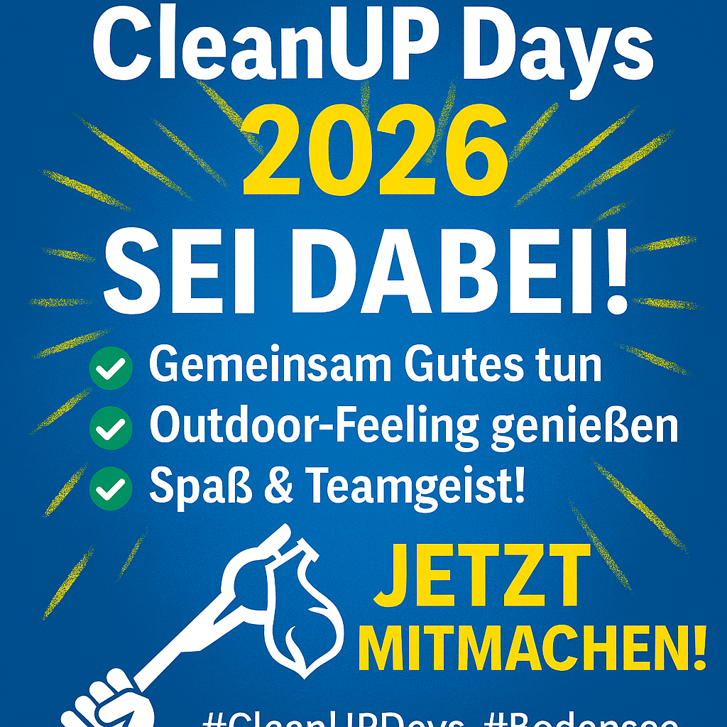 vom 22. bis 26. Juni 2026 heißt es wieder: Gemeinsam anpacken für unsere Natur! Die Bodensee CleanUP Days stehen vor der Tür – und wir wollen zeigen, wie stark unsere Community ist.