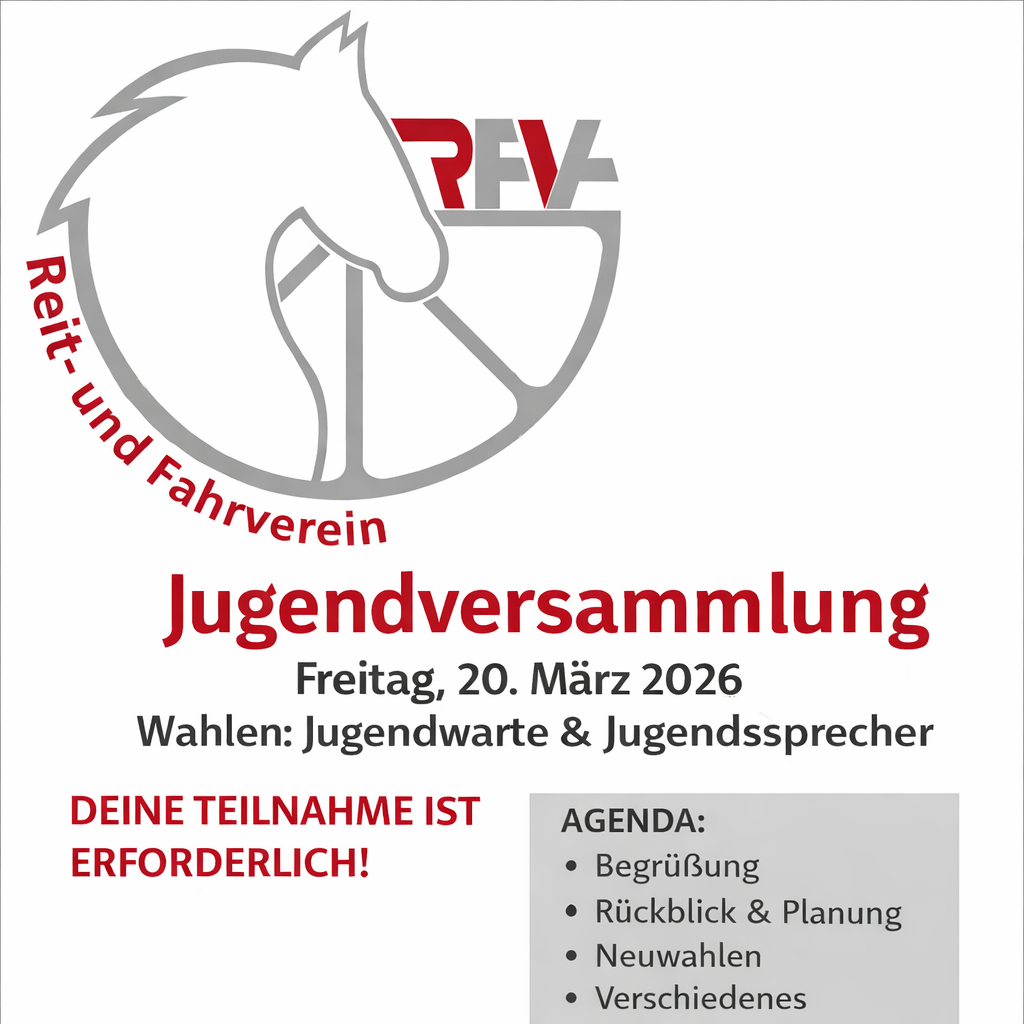 Am Freitag, den 20. März 2026, lädt der Reit- und Fahrverein Ailingen alle jugendlichen Mitglieder herzlich zur jährlichen Jugendversammlung ein. Die Versammlung findet in Präsenz statt, da wichtige Wahlen anstehen und die Stimme jedes Mitglieds zählt.