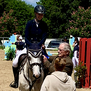 Für Carla und ihre versionierte Lilly Belle war das überhaupt gar kein Problem: souverän absolvierten sie den Parcours und zeigten allen, was sie können! Sie waren auch mit ihrer sensationellen Wertnote von 8,5 nicht zu schlagen und damit ging direkt der Sieg der ersten Prüfung an Ailingen und Carla van Wees mit ihrer süßen Lilly - Wertnote 8,5 und Gold!