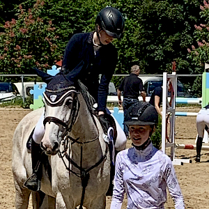 Sonntagmorgen in Weingarten wurde mit dem Reiterwettbewerb im Springen um 10 Uhr eingeläutet über eine Höhe von 55 cm. Mit am Start war unsere Lisa Saier,, die ihren Schimmelwallach Czartbitter gesattelt hatte und erfolgreich den etwas turbulenten, Abreiteplatz absolviert hatte. Die beiden gingen an eine erste Turnierrunde dieser Saison: der etwas anspruchsvolle Platz war eine Aufgabenstellung, die sie jedoch souverän meisterten. Wertnote 6,7 befanden die Richter. Am Ende für die beiden die erste Schleife 2024: wir gratulieren ganz herzlichst zu einem erfolgreichen 10. Platz. Weiter so!