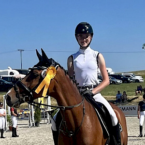 Und am Sonntag ging es dann vom See ins Allgäu - nach Bad Wurzach. Der Verein hatte geladen zu Dressur und Springen für die Youngsters und die waren samt Trainerin Alisa Pickl auch direkt vor Ort aktiv und erfolgreich. Für Lisa Häder ging's bei fast schon Mittagshitze im Reiterwettbewerb Schritt-Trab-Galopp ins heiße Eck. Ihre fetzige Horse Gym's Caramba hatte sie aufgetrenst. Elegant und gelungen durch die Prüfung, das wurde auch direkt mit WN 7,4 belohnt. Super Leistung. So musste sie sich wirklich nur knapp den Platzierten auf dem Treppchen geschlagen geben - Pl 4 in der Prüfung fürs schöne Duo am Ende. Herzlichen Glückwunsch!