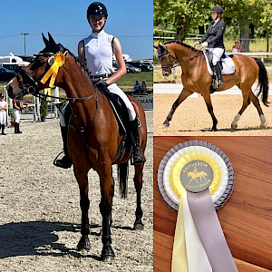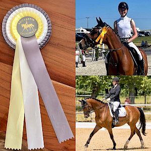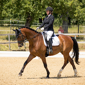 Danach ging es direkt weiter im Programm mit einer Dressurprüfung der Kl L. Unsere Lena Breyer war ebenfalls früh aufgestanden, für die 2. Prüfung der Klasse L, und hatte ihren Dressurcrack Donaustar an Bord. Nach langer Verletzungspause und Turnierauszeit hatten die beiden eigentlich keinerlei Erwartungen, das Ziel war gut durchzukommen und bisserl mehr Turniererfahrung zu sammeln. Doch der sensible Braune zeigte nach initialem "Gespenstergrusel", was in ihm steckte: Viereck Einreiten gelang, das lebendige Ambiente beflügelte, schwungvoll ging's voran - I like it! - und startete durch. Fürs dynamische Duo eine elegante Runde im weißen Viereck: WN 7,1. Und damit der direkte Jump aufs Treppchen - Silber - und Pl 2. Sensationell und wir sind ultrastolz auf unseren Pressewart und ihren tollen Dancer!