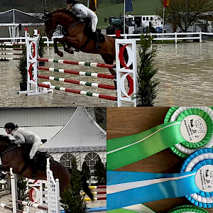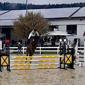 Und wer kennt schon schlechtes Wetter!? Springen wir drüber: In der Springpferdeprüfung der Klasse A** belegte Julia Lichtinger in der 2. Abteilung und einer Wertnote 7,8 ein weiteres Mal Platz 6! Und aus dem Double wurde ein Triple mit charmantem Lift: In der 3. Prüfung des Tages, eine Springpferdeprüfung der Klasse L, katapultierte sich Julia Lichtinger mit ihrer dynamischen Limited Edition F.E. mit ordentlich Schub - dieses Mal mit einer phantastischen 7,9 - auf Platz 4 in der 1. Abteilung! Caramba.