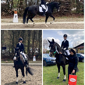 Das war noch lange nicht alles für die Dressur im Viereck - denn am Sonntag ging es für unsere Mia Moll mit ihrer Black Beauty nach Pfullendorf. Der Opener des Tages war direkt ihr Durchstart aufs Treppchen: Mia ging am Vormittag in der Dressurreiterprüfung der Klasse A an den Start. Für das beautiful Duo - Mia & ihre Two to Tango - gab's von der Richterbank für den sehr harmonischen Ritt eine super 7,5 und damit - !!Silber!! - einen sensationellen 2. Platz.