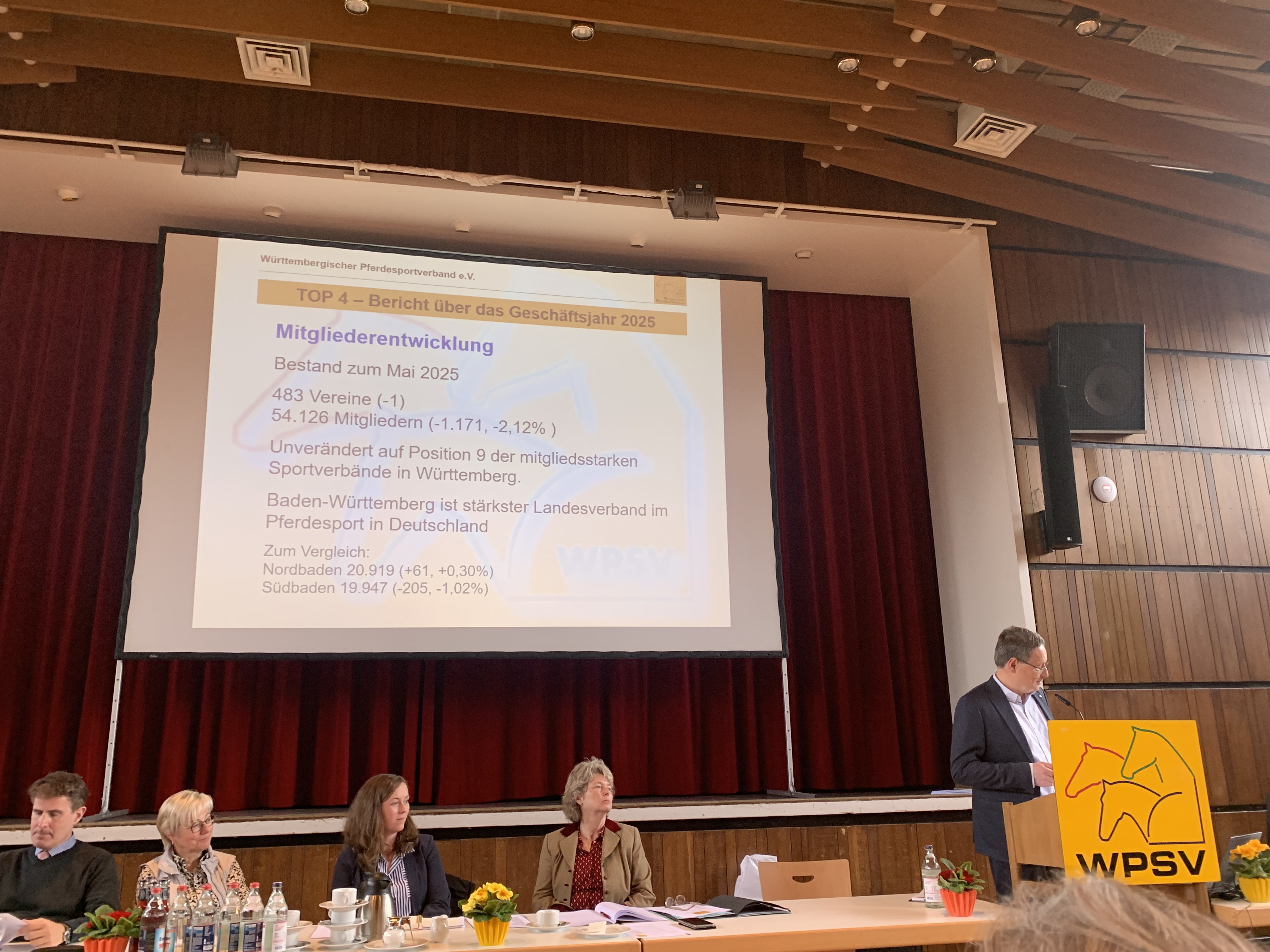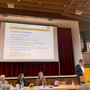 In der anschließenden Versammlung betonte WPSV-Präsident Frank Reutter das besondere Jahr 2026 – 125 Jahre WPSV. Die Mitgliederzahlen zeigen stabile Entwicklungen bei Erwachsenen, jedoch Rückgänge im Jugendbereich – ein klarer Auftrag, Kinder und Jugendliche wieder stärker an den Pferdesport heranzuführen.