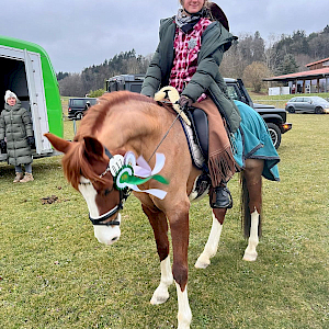 Auch in Fronhofen wurde es jetzt spannend im Dressurviereck: unsere Clara Roggendorf hatte ihren super sweet Franklin mitgebracht und Pony und Reiterin waren super im Form. Winterpause gut gemeistert und PSKO-Lehrgang mit Lucia Burkhart in Ailingen absolviert - dass die beiden fit waren, no secret. So sahen es auch die Richter um 13:30 Uhr in der Dressurreiterprüfung Kl. A: mit Wertnote 7,0 holten sich die beiden einen hervorragenden 6. Platz hinter den "Großen"! Super gemacht. Und einmal warm gelaufen, ging es fürs Youngster-Dreamteam gleich weiter in der Amateur-Dressurprüfung Kl. A* um 15:45 Uhr. Jetzt lief es wirklich rund und das wurde auch nicht übersehen, Wertnote 7,4 und damit Platz 2 und Silber für Clara und ihren Franklin. Herzlichen Glückwünsch!