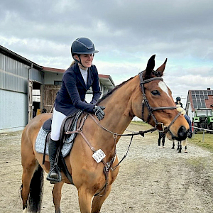 Und am Samstag, den 15.3. hieß es für die beiden nochmals antreten: um 10:30 Uhr läutete die Glocke erneut für die Amateurspringpferdeprüfung Kl A* mit Clear-Round-Modus über 90 cm. Erneut dabei und gut angeritten standen am Start unsere Emily Arnegger mit ihem Youngster. Und erneut gelang der Coup, nämlich fehlerfrei auf einen großartigen Platz 6 in einer sensationellen Zeit von 71s auf Comme Balouna zu galoppieren. Tolles Ergebnis für die beiden Turniertage beim neuen Team! Gratulation.
