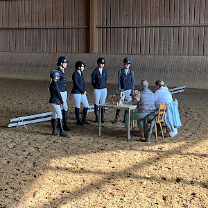 Am 11. Juni 2025 fand bei strahlendem Sonnenschein und einfach brillant im Sommerwetter und Reitabzeichen-Prüfungstag in Ailingen statt. Gestartet wurde mit den Aufgaben für den Pferdeführerschein Umgang. Dem folgten Springen und Dressur für die RA5 und RA4 sowie die theoretische beziehungsweise mündliche Prüfung. Gegen 13:00 Uhr hat es dann alle Teilnehmerinnen geschafft.