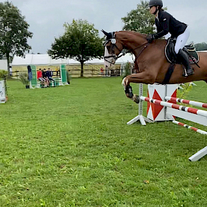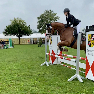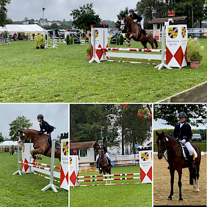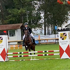 Vergangenes Wochenende fand auf der schönen Reitanlage in Baindt das jährliche Turnier statt. Rebecca und Ulrika Maier waren mit Snoopy am Start und Alina und Lisa Häder mit Sneaker. Alle 4 sind Reitschülerinnen der Reitschule Brugger und wurden natürlich von den Reitlehrerinnen begleitet. Rebecca und Ulrika Maier starteten beide mit Snoopy in einem E-Springen und waren beide mit großartigen Wertnoten platziert. Rebecca bekam für ihre schöne Runde eine 8,3 und den 2. Platz. Auch Ulrika zeigte eine harmonische Runde und wurde mit einer 7,6 und dem 7. Platz belohnt. Im Springreiterwettbewerb startete Alina mit Sneaker. Routiniert und geübt zeigten sie eine schöne Runde, die am Ende WN 7,8 und somit den 6. Platz bedeuteten. Im Reiterwettbewerb Schritt-Trab-Galopp startete Alina ebenfalls mit Sneaker und sie waren nicht zu schlagen – das war am Ende mit der WN 7,5 der Sieg! Aber auch Lisa gelang mit Sneaker eine super Prüfung, die mit einer 7,0 und Platz 3 bewertet wurde.