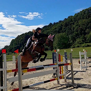 Zweimal hatte sie gemeldet und zweimal hieß es für die beiden erfolgreich platziert. Doch sie war mit ihren Reiseplänen nicht ganz alleine: auch Sophia Schneider hatte ihren süßen Wallach Prittchard - liebevoll Fritz genannt -, eingepackt und in Isny aufgestallt. Auch sie war fleißig am Springen und alles andere als nicht erfolgreich! Von daher ein tolles Dream-Team im Einsatz in Isny.