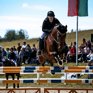 Und wenn man schon mal so gut unterwegs ist, dann geht's auch quasi direkt weiter: zurück zu Julia Lichtinger - versiert ging's erneut an den Start am Sonntag, den 16.06. zu 13:15 Uhr und damit ab in die zweite Prüfung des Turniers für die beiden. Eine Amateur-Stilspringprüfung der Klasse M* über 120 cm. Auch hier fühlte sich die elegante Stute in der großen Isny-Arena zuhause: Bijou mit Pilotin Julia im Sattel lieferte eine sensationelle Nullrunde ab in einer tollen Zeit - mit einer Wertnote von 7,4.