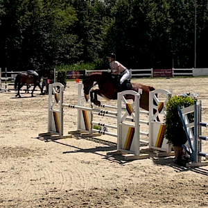 Jetzt wechseln wir kurz die Perspektive und fahren zusammen mit Lina Gaye am 15.6. nach Rielasingen: dort hatte Lina für ihre Feldrose die Springprüfung mit steigenden Anforderungen Klasse A** über 105 cm gebucht. Die beiden hatten erfolgreich das Warm-Up absolviert und starteten in der Prüfung durch! Feldrose gefiel die Umgebung unter der Parcours: einwandfreie Runde mit Null!-Fehlern in einer Zeit von 47,89s - sensationell gut - und in einem sehr ambitionierten Starterfeld katapultierte sie dieses Ergebnis direkt auf dem 5. Platz. Wir gratulieren, herzlichst!
