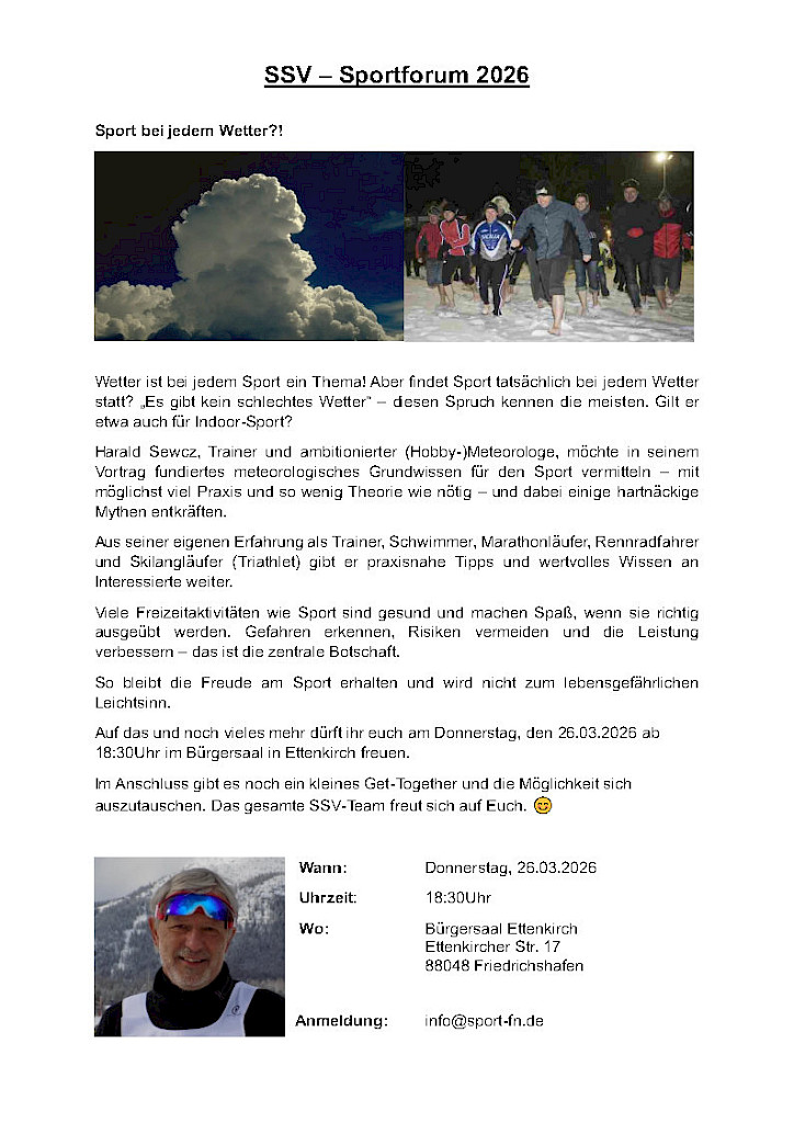 Beim SSV-Sportforum 2026 dreht sich alles um die spannende Frage: Findet Sport tatsächlich bei jedem Wetter statt?