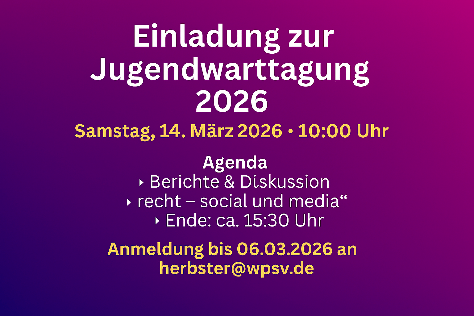 Einladung zur Jugendwarttagung 2026!
